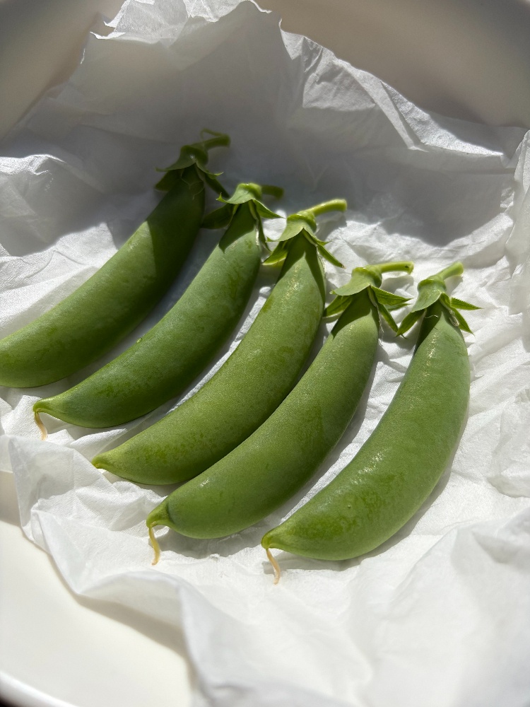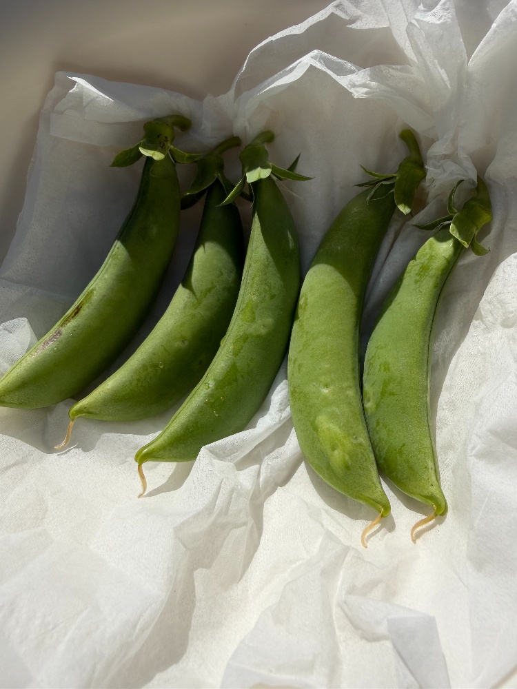 スナップえんどうA品表面にしろい斑点がなく、見た目きれいです。厳密にいうと白い斑点が表裏それぞれ1個のみをA品と定めています。(市場)